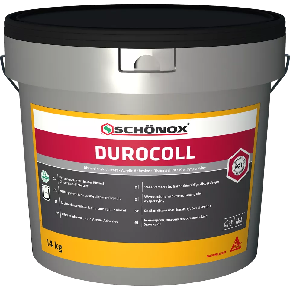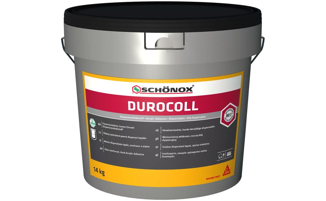 SCHÖNOX DUROCOLL is een professionele, emissiearme dispersielijm voor PVC stroken, tapijt, linoleum en rubbervloeren.