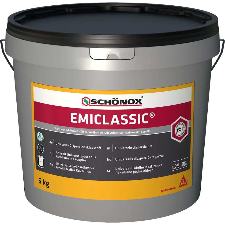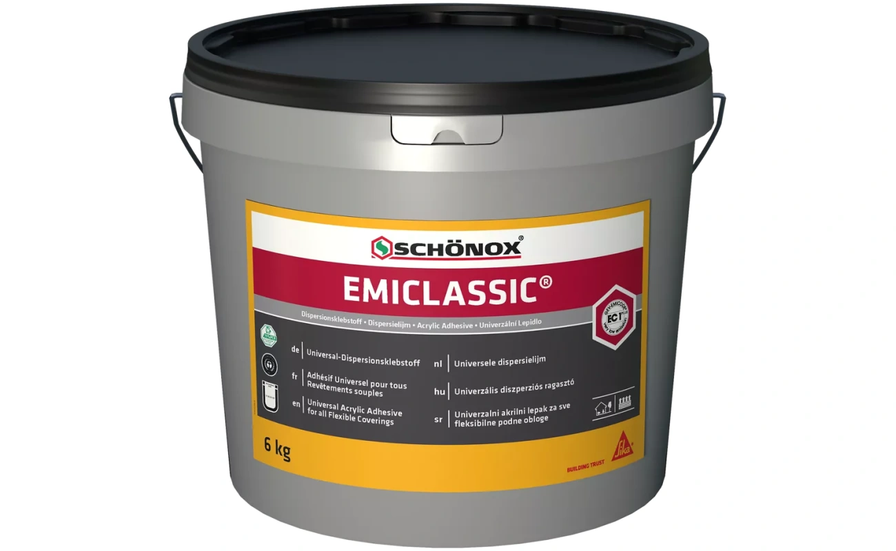 Schönox EMICLASSIC is een krachtige, gebruiksklare dispersielijm voor het professioneel én veilig verlijmen van diverse vloerbedekkingen. Deze lijm is oplosmiddelvrij, emissiearm en ontwikkeld voor zowel nieuwbouw als renovatie. Ideaal voor het verlijmen van tapijt, PVC, CV, linoleum en rubbervloeren op absorberende ondergronden.