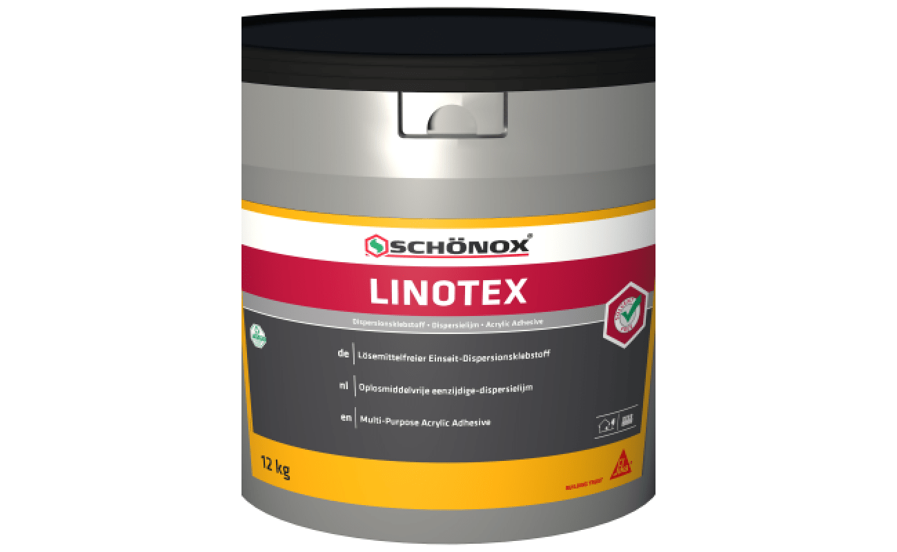 Bestel vandaag nog Schönox Linotex en profiteer van een duurzame, veilige verlijming voor linoleum, kurk en textielvloeren.